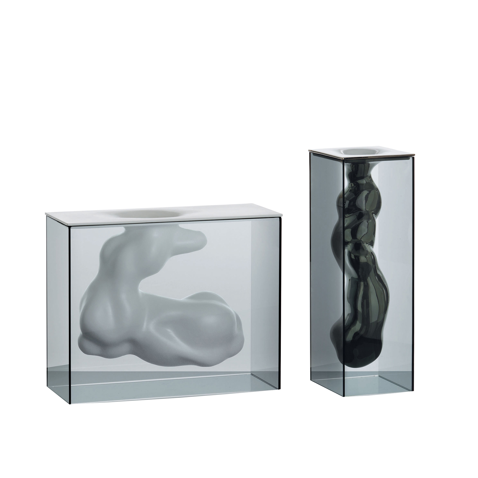 Glas Italia - ANG01 Angelo Vase, Smoked Glass, Ceramic sculpture, Finish: Platinum lacquered - Krukor & vaser - Jean-Marie Massaud - Transparent
