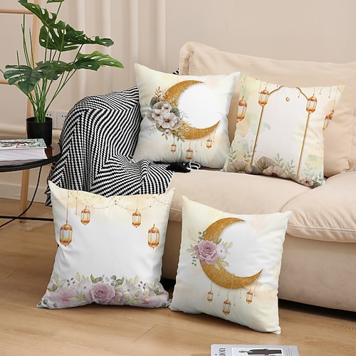 federa per cuscino Ramadan Eid, mezzaluna dorata stampa lanterna, decorazione per festival mediorientali, cuscino per divano in stile etnico per soggiorno e sala di preghiera