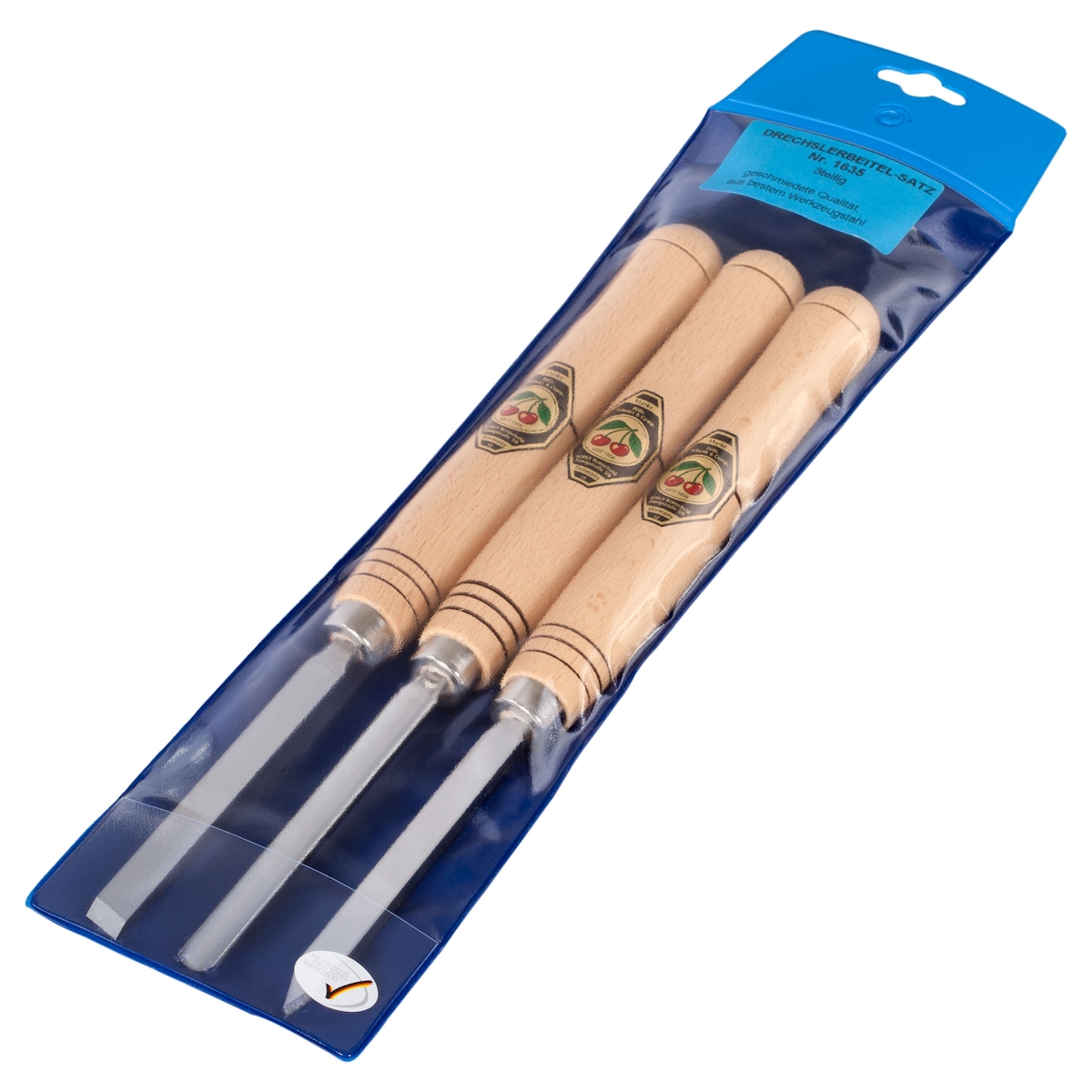 Kirschen 3-teiliger Kurz-Drechslerbeitel-Satz mit Weißbuchenheft in SB-Tasche