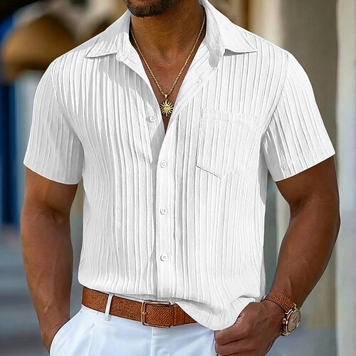Per uomo Camicia Camicia casual Camicia da Spiaggia Camicia con Bottoni Camicia Jacquard Blu Nero Bianco Blu marino Kaki Manica Corta Semplice Bavero Casuale Abbigliamento casual alla moda Bottoni