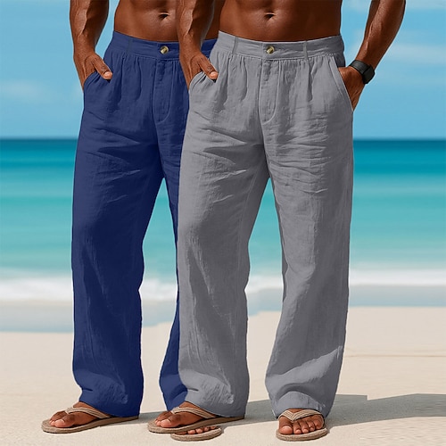 Per uomo Pantaloni di Lino Pantaloni Pantaloni Estivi Pantaloni Larghi Pantaloni da Spiaggia Tasca Semplice Comodità Traspirante Lunghezza intera Casuale Quotidiano All'aperto Vacanza Moda Bianco