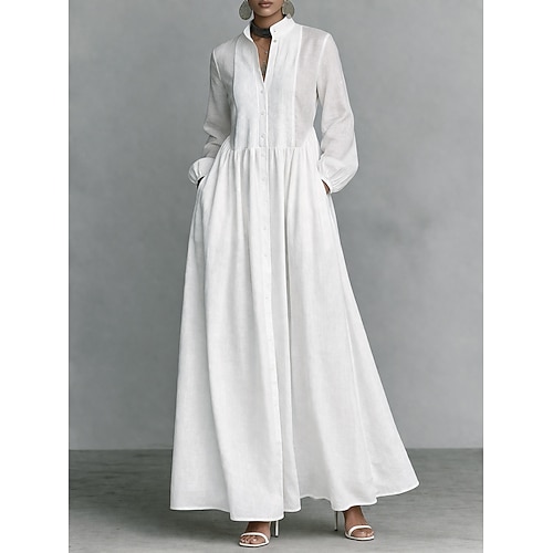 Per donna Abito maxi Abito Camicia Abito Bianco Abito da laurea Elegante Moda Moderno All'aperto Vacanza Uscire Vestibilità regolare Semplice Manica Lunga Collo Alto Blu Nero Bianco Rosa Estate