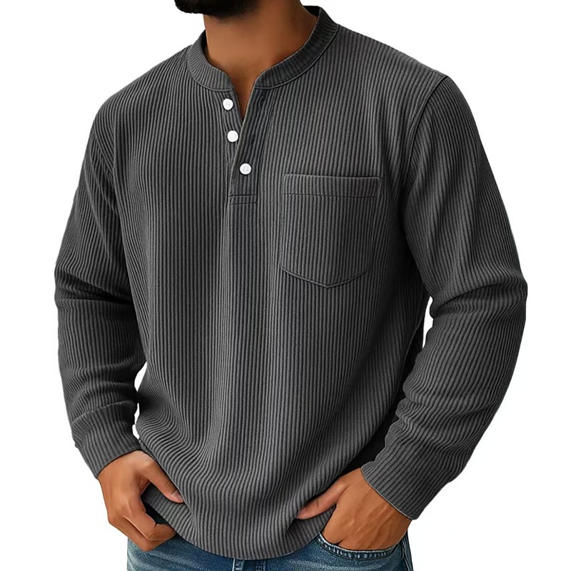 Men's Corduroy Shirt Henley Shirt Tee Long Sleeve Solid Color Plain Textured Fashion Designer Casual Pocket Buttons Warm Henley Casual Daily Outdoor Summer Fall Winter Light Blue Burgundy Navy Blue