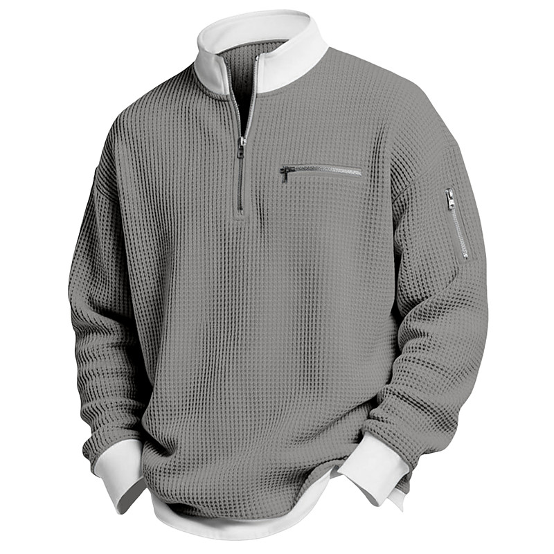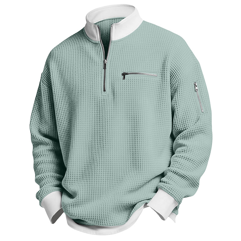 Men's Waffle T-shirt T Shirt Long Sleeve Half Zip Spring Fall Winter Solid Color Traditional / Vintage Casual Color Block Zipper Pocket Outdoor Home Sports Outdoor Light Blue Red Purple Top Tee