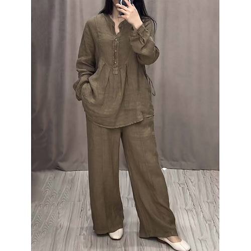 Per donna Set di biancheria in cotone Set da due pezzi Maglietta Pantaloni di Lino Pantaloni Manica Lunga Girocollo Semplice Coulisse Moda Streetwear Abbigliamento quotidiano Data Nero Azzurro cielo