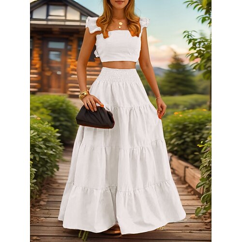 Per donna Set di gonne Senza Maniche Collo quadrato Semplice Arricciato Elegante Moda Streetwear Casuale Quotidiano All'aperto Nero Bianco Giallo Estate Vestibilità regolare