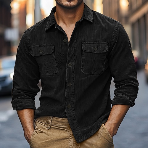 Per uomo Camicia di Velluto a Coste Nero Viola Marrone Grigio Manica Lunga Semplice Collo ripiegato Casuale All'aperto Tasca Abbigliamento Vintage Classico Casual