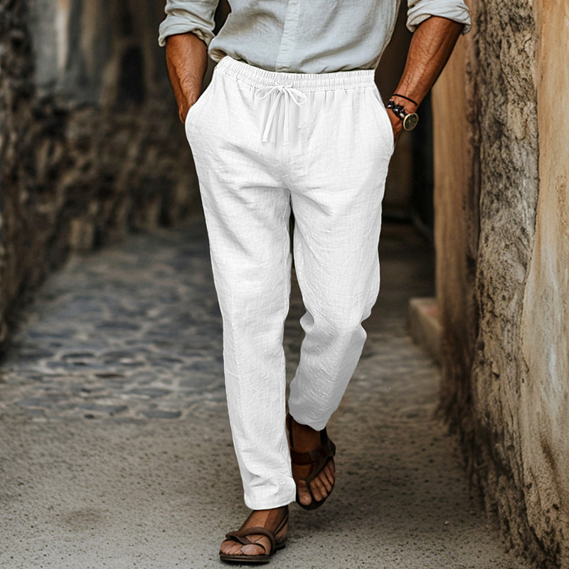Men's Linen Pants Trousers Pocket Drawstring Plain Comfort Breathable Daily Streetwear Vintage Stylish Light Khaki Black Micro-elastic