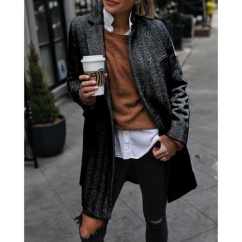 Per donna Cappotto Invernale Cappotto Caldo Confortevole Tasca Bottoni Casual Plaid Vacanza Streetwear Casuale Abbigliamento quotidiano Lungo Collo ripiegato Vestibilità regolare Manica Lunga
