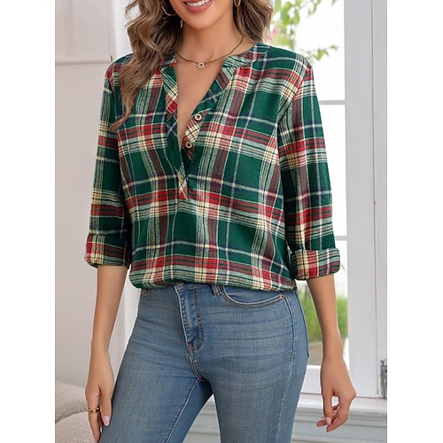 Per donna Giacca Casual Giacca Camicia Confortevole Traspirante Tasca Bottoni Stampato Casual Plaid Vacanza Streetwear Casuale Abbigliamento quotidiano Monopetto Regolare Collo ripiegato Vestibilit