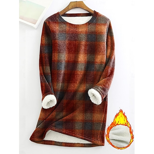Per donna Felpa Pullover Plaid Casual Manica Lunga Girocollo Top lunghi Abbigliamento Quotidiano Casuale Giallo Rosso Blu Inverno
