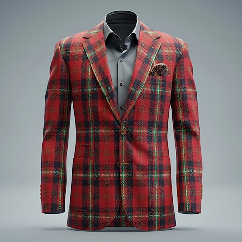 Per uomo Blazer in Tweed Colletto ad incastro Moda Festa Casual Plaid Blazer Blazer in tweed Rosso Vestibilità su misura Monopetto Due Bottoni