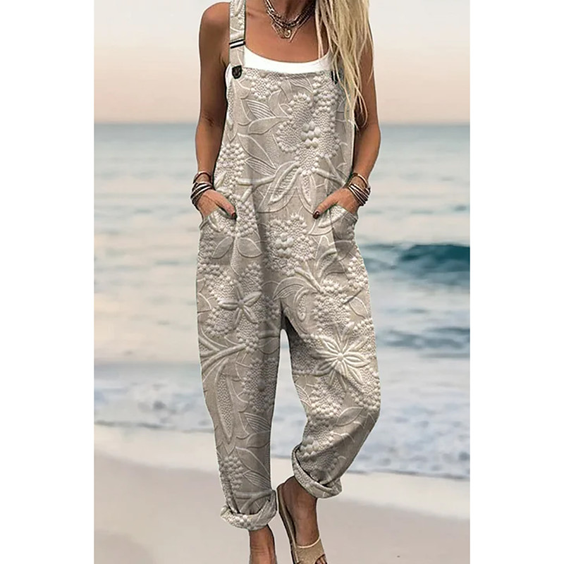 Women's Dungarees Active Floral Sleeveless Sleeveless Harem Square Neck Pocket with Pocket Vacation Daily Loose Fit Army Green Green Beige Summer