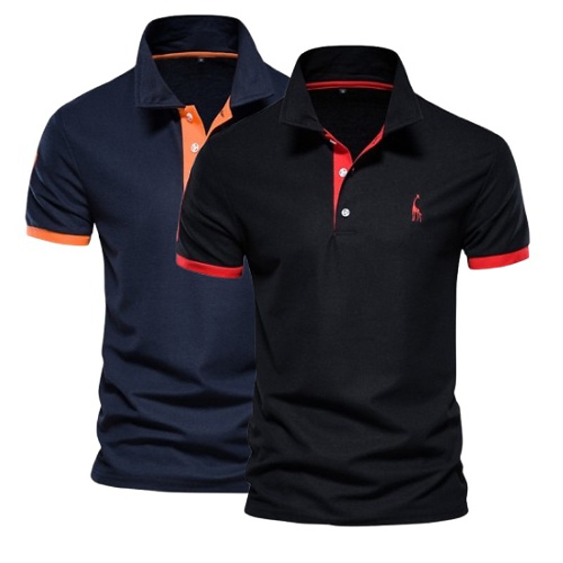 2PCS Men's Polo Golf Shirt Casual Lapel Short Sleeve Comfortable EmbellishedEmbroidered Basic Summer Regular Fit Polo