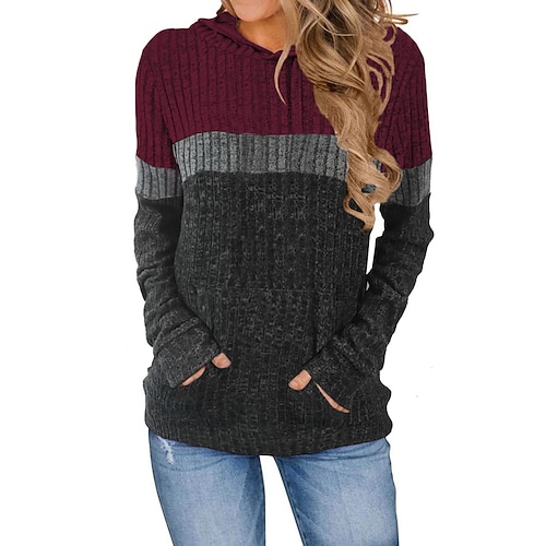 Per donna Felpa con cappuccio A righe Casual Manica Lunga Con Cappuccio Top Regolari Streetwear Abbigliamento Quotidiano Tasca Stampato Nero Rosa Vino Fucsia Verde militare Autunno Inverno