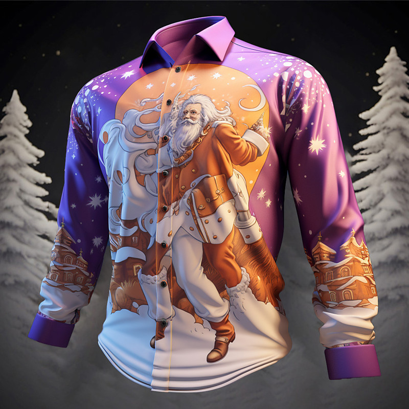 Christmas Men's Santa Claus Printed Shirts Santa Claus Casual Daily Wear Going out Fall Winter Turndown Long Sleeve Yellow, Pink, Royal Blue S, M, L 4-Way Stretch Fabric Christmas