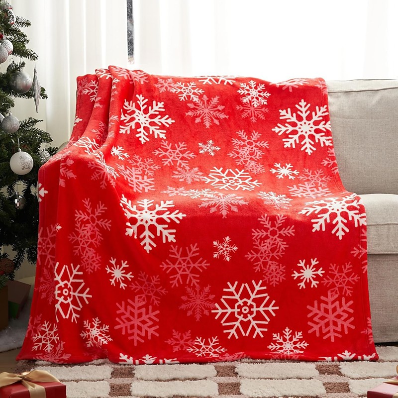 Christmas Reindeer Flannel Blanket, Ultra-Soft Plush Warm Throw, Holiday Bed Sofa Decor for Winter