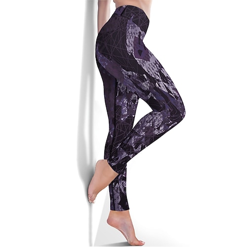 Damen Gym Sport leggings Yogahose Hoher Taillenbund Elasthan Grün Grau Purpur Kurz geschnittene Leggings camuflaje Bauchkontrolle Kolbenheber Kleidung Yoga Fitness Fitnesstraining Laufen / Sportlich