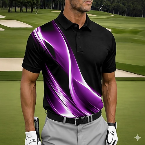 Per uomo Geometrico Golf Polo Sportivi Manica Corta Magliette polo Camicie con Colletto Casual Athleisure Bottoni Estate Primavera Blu Bianco Viola
