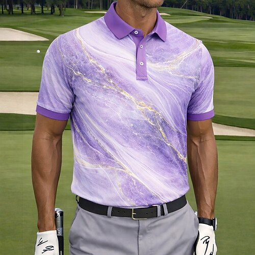 Per uomo Marmo Golf Polo Sportivi Manica Corta Magliette polo Camicie con Colletto Casual Athleisure Bottoni Primavera Estate Blu Viola Verde