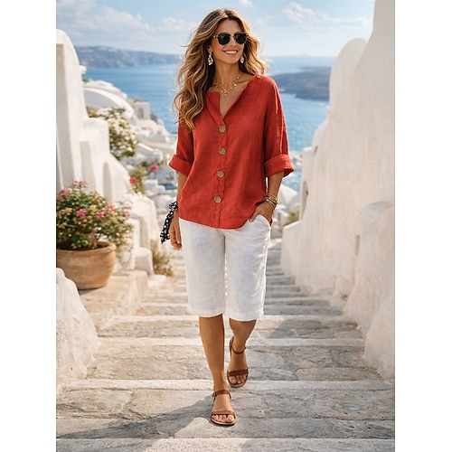 Per donna Set coordinati Camicie di cotone e lino Set Camicia Pantaloncini in cotone e lino Shorts Shorts da Spiaggia Pantaloncini casual Maglietta Mischia e abbina Vestito 2 pezzi Sport Streetwear