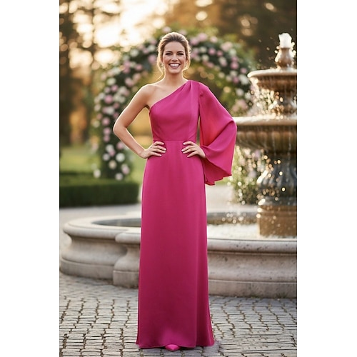 Tubino Colonna Lunghezza al pavimento Abito da invitata a nozze Abito da sera Abito da cerimonia per signora Manica Corta Manica Lunga Monospalla Elegante Semplice Formale con Tinta unita