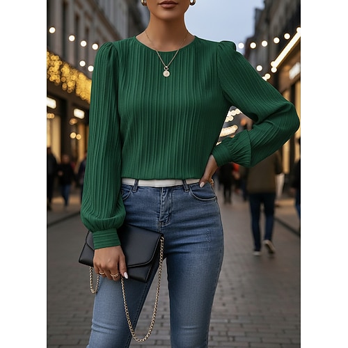 Per donna Top Eleganti Patchwork Drappeggiato Tinta unica Semplice Elegante Signore Classico Manica Lunga Manica a Lanterna Girocollo Top Regolari Quotidiano Lavoro Uscire Blu Bianco Vino Azzurro