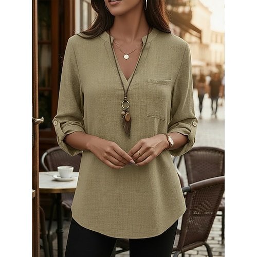 Per donna Top Eleganti Tasca Tinta unica Semplice Elegante Signore Moderno Manica Lunga Scollo a V Top Regolari Quotidiano Lavoro Uscire Nero Bianco Rosa Verde Cachi Autunno Inverno