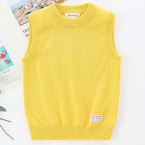 Bambini Ragazze Pullover Maglione Tinta unica All'aperto Senza Maniche Girocollo Moda 4-12 Anni Autunno Giallo Rosa Blu marino