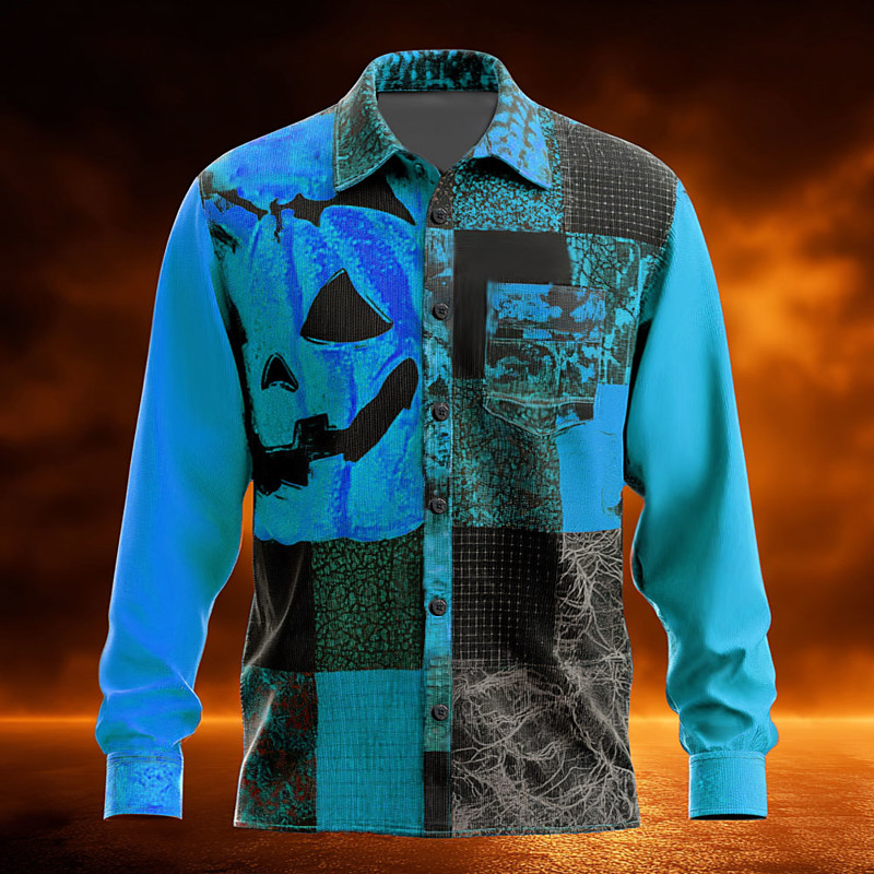 Halloween Men's Color Block Pumpkin Patchwork Shirt Button Up Shirt Long Sleeve Dark Gothic Style Holiday Streetwear Summer Spring Turndown 3D Print Collared Shirts Yellow Blue Orange Green