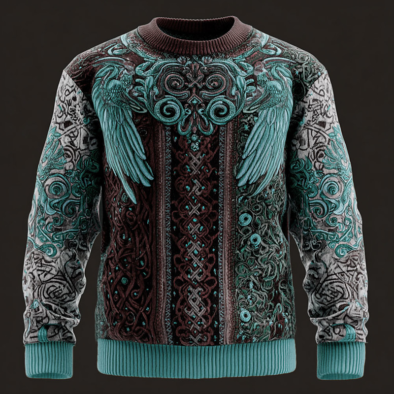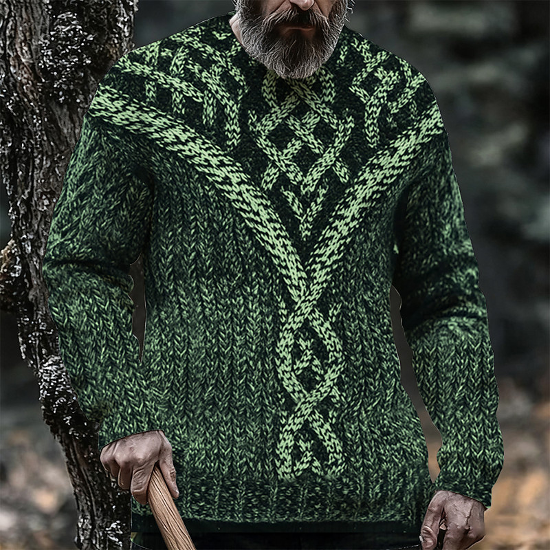 Men's Viking Pullover Sweater Jumper Knitwear Crewneck Retro Vintage Casual Vacation Daily 3D Print Knitting Keep Warm Long Sleeve Spring Fall Winter Blue Brown Green