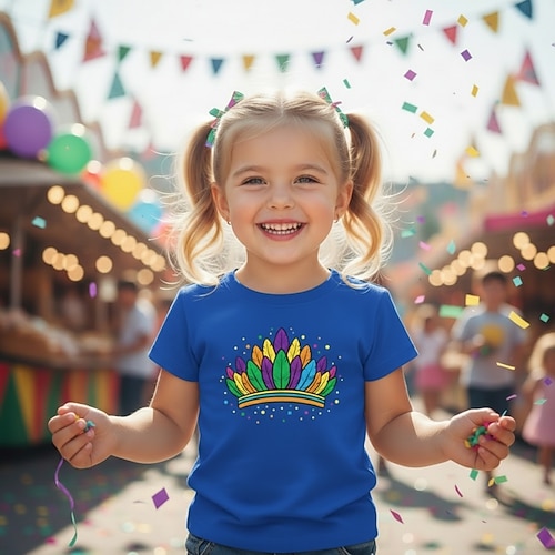 100% Cotone Carnevale Bambini Ragazze Blu Nero Bianco Grafico Corona Martedì grasso Maglietta Girocollo Manica Corta Vacanza Sport Outdoor Abbigliamento Quotidiano Moda Streetwear Casual Stampa