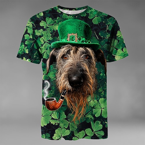 San Patrizio Per uomo Cane Trifoglio Irlandese fortunato Maglietta Manica Corta maglietta Stampa 3D Girocollo Camicia Designer Casual Club Feste Ferie verde 1# Verde 2# Verde 3# Estate Primavera