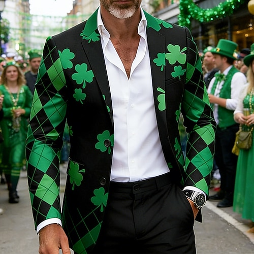 San Patrizio Per uomo Trifoglio Blazer Confortevole Traspirante Affari Casual Quotidiano Abbigliamento da sera Festival Tasca Stampa 3D Bottoni Primavera Autunno Dentellato Manica Lunga Verde scuro