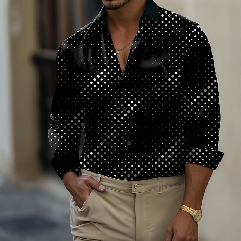 Men's Geometric Polka Dot Gradient Color Shirt Satin Shirt Dress Shirt Long Sleeve Business Casual Vacation Dailywear Summer Spring Fall Turndown 3D Print Button Up Shirts Blue Black White Yellow