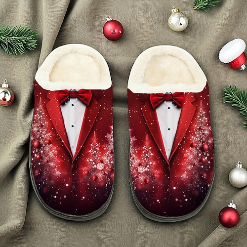 pantofole da uomo con stampa smoking natalizia - design classico smoking, pantofole con fodera pelosa per uomo, a tema festivo per feste di Natale, relax e regali per le feste