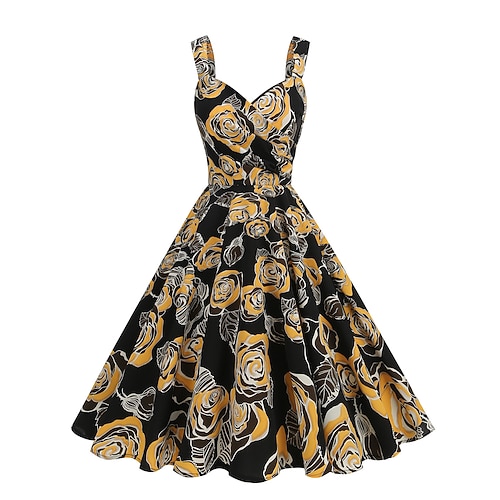 Retrò Vintage Anni 1950 Hepburn Midi Vestito Abito a trapezio Vestito Svasato Senza maniche Floreale Aderente Svasato Costume Per donna Carnevale San Valentino Casuale Ritorno a casa Festa a tema