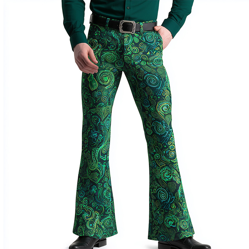 St. Patrick's Day Men's Four Leaf Clover Shamrock Trousers Disco Pants 60s 70s Bell Bottoms Mid Waist Vintage Retro Holiday Side Pockets Flared Leg Pants Trousers Spring Fall 3D Print Light Green