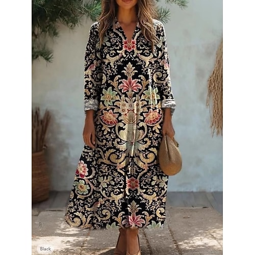 Per donna Abito maxi 100% cotone Abito a Tubino Vestito a caftano Vestito Casual Casual Quotidiano Casual Stile da Strada Quotidiano All'aperto Vacanza Vestibilità comoda Semplice Manica Lunga
