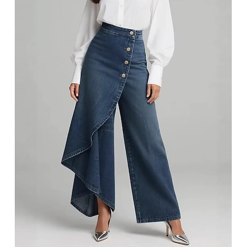 Per donna Gamba larga Vacanza Essenziale Lunghezza intera Misura del girovita medio Inelastico Vacanza Streetwear Casual Blu Nero Blu Primavera Vestibilità comoda
