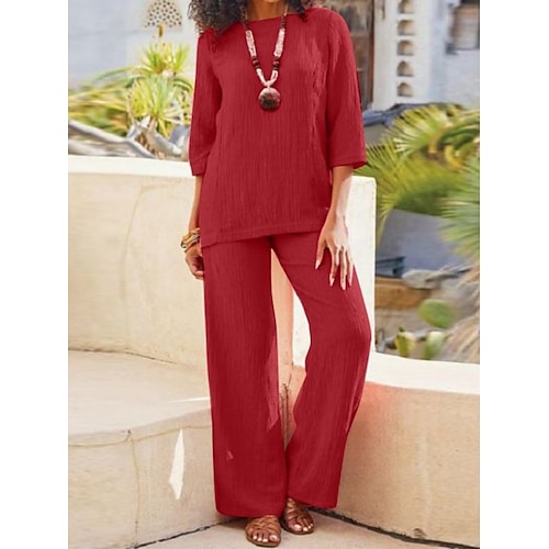 Per donna Set da due pezzi Set di Pantaloni Bolero Top Mezza Manica Girocollo Semplice Vintage Moda Streetwear Casuale Quotidiano All'aperto Rosso Blu marino Cachi Estate Vestibilità comoda