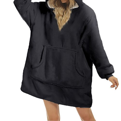 Per donna Pigiama Abbigliamento da Casa Moda Casual Felpa con cappuccio indossabile Colore Puro Tasca Vestiti Vacanza Casa Manica Lunga Girocollo Nero Vino Grigio chiaro Blu scuro Grigio scuro