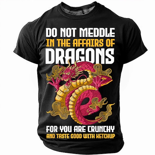 T-Shirt Grafica da Uomo Con Drago Divertente 'Non Intromettersi Negli Affari Dei Draghi' Citazione di Ketchup Croccante a Maniche Corte