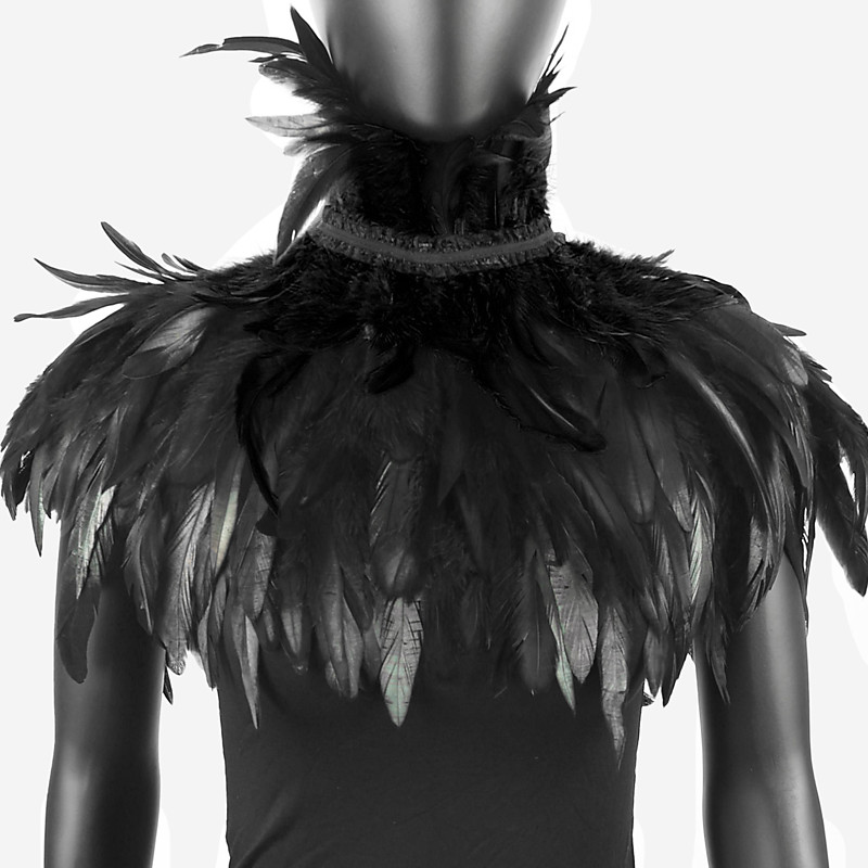 Carnival 2026Rio Carnival Samba Accessories Women's Black Feather Cape Shawl with High Collar Brazil Festival Performance Costume