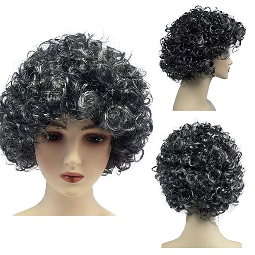 Parrucca sintetica per cosplay, anime, capelli corti, ricci, ondulati, da 14 pollici/35 cm, per feste di Halloween