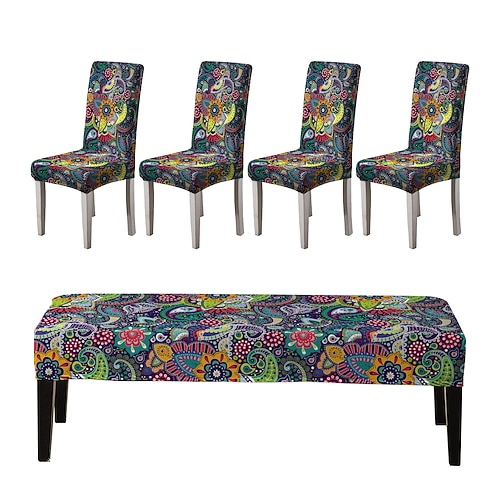 Set di fodere per sedie da pranzo e fodere per panche stampate, adatte per sedie da pranzo, include 5 pezzi, 4 fodere per sedie e 1 fodere per panca.