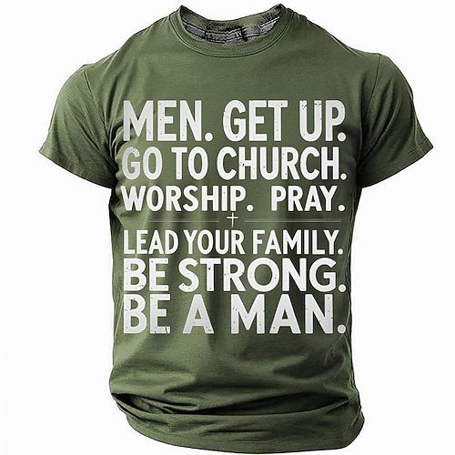 Maglietta Grafica Ispiratrice Cristiana da Uomo - Guida la tua Famiglia Sii Forte Sii un Uomo Fede a Manica Corta