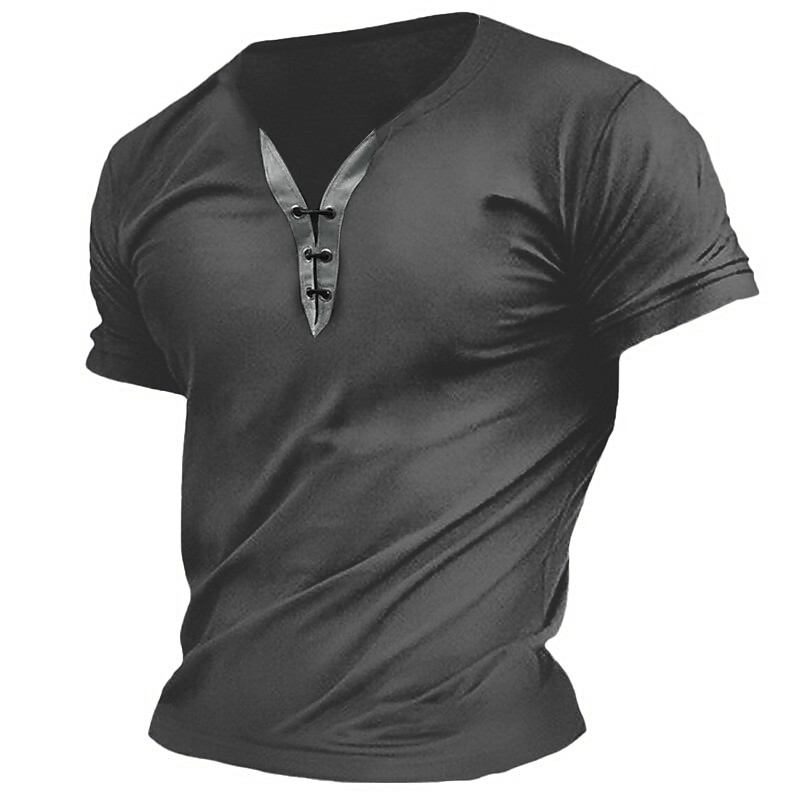 Men's T Shirt Tee Top Short Sleeve V Neck Spring Summer Plain Fashion Designer Basic Lace up Vacation Street Going out Army Green Dark Grey Black Top Tee for Men