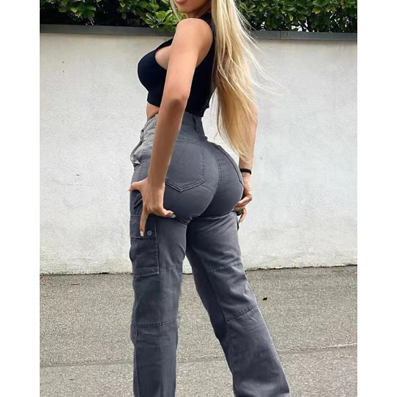 Women's Jeans Chinos Streetwear Casual Full Length Medium Waist Plain Pocket Elastic Waist Comfortable Micro-elastic Outdoor Vacation Daily Grey Black Light Green Dark Navy Summer Spring Loose Fit