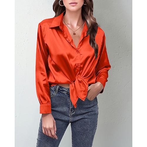 Per donna Camicia Elegant Elegante Raso/Satin Tinta unica Elegante Casual Manica Lunga Colletto a Camicia Top Regolari Quotidiano Uscire Bottoni Verde chiaro Azzurro cielo Viola Arancione Cachi